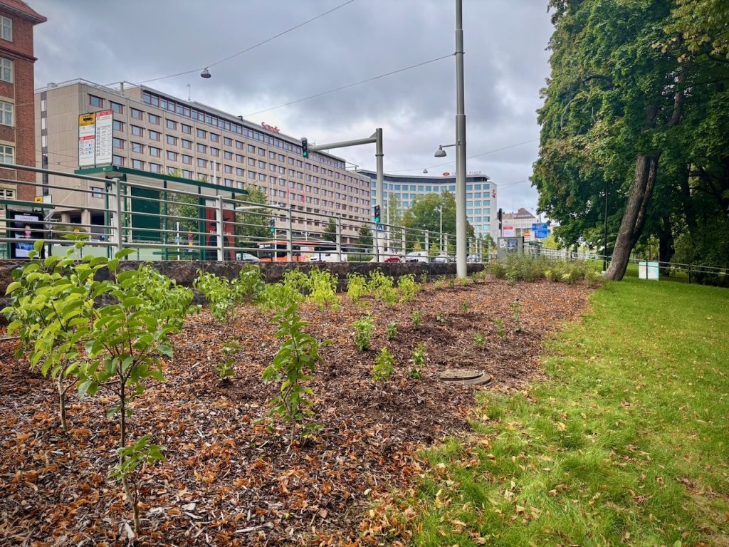 Niiden jälkeen Manskun katutöiden yhteydessä tehdyt puiston reunan istutukset ovat valmiit.
